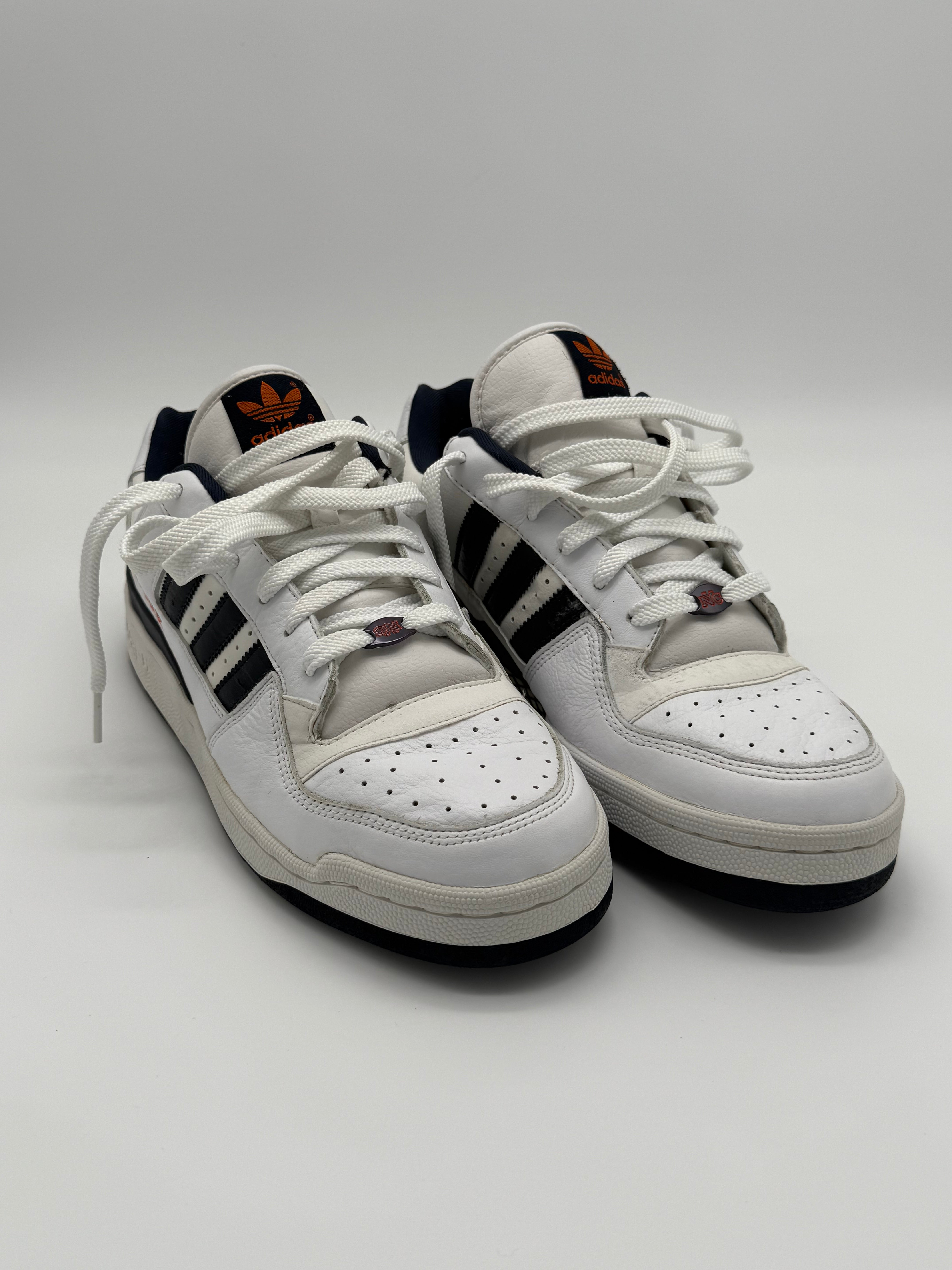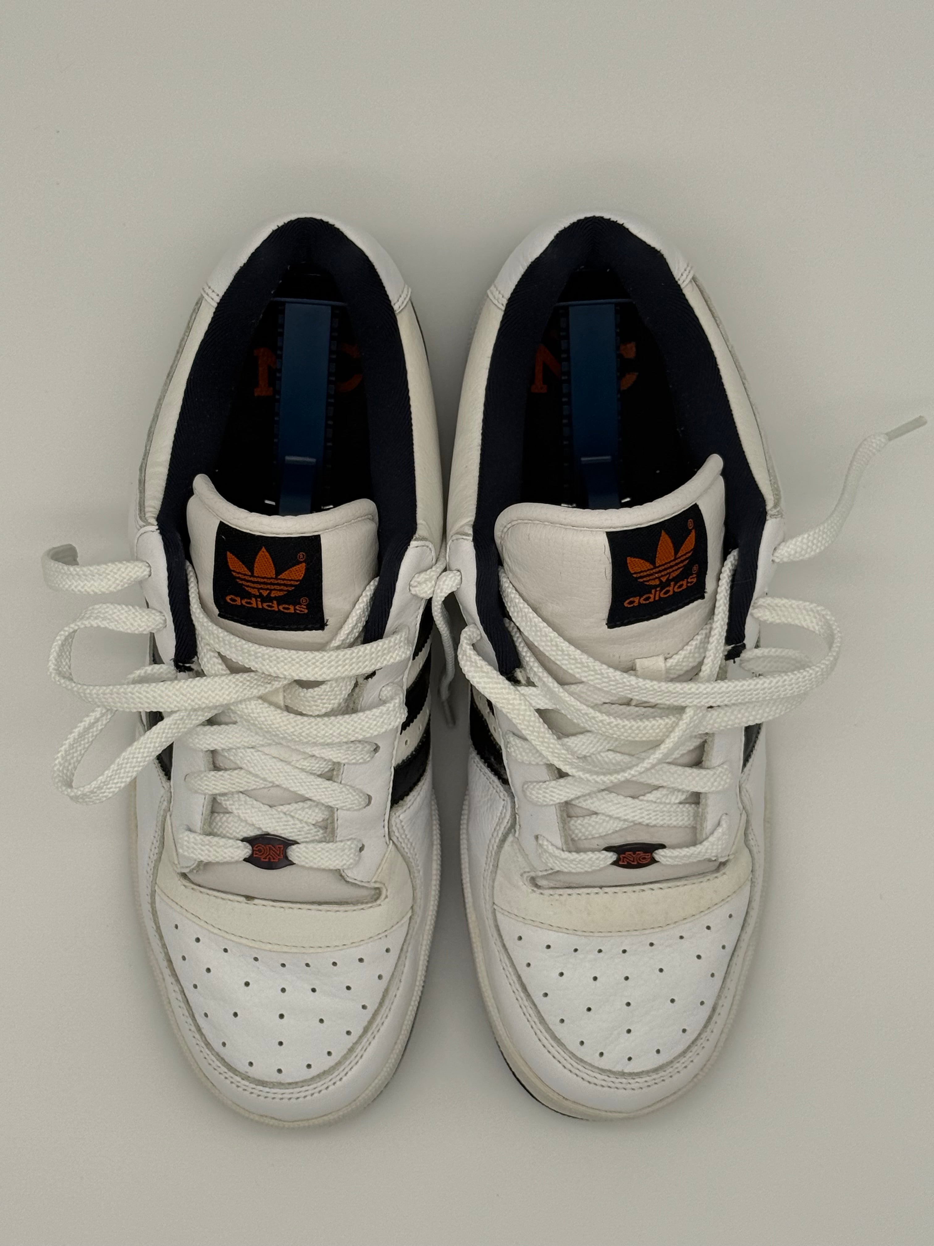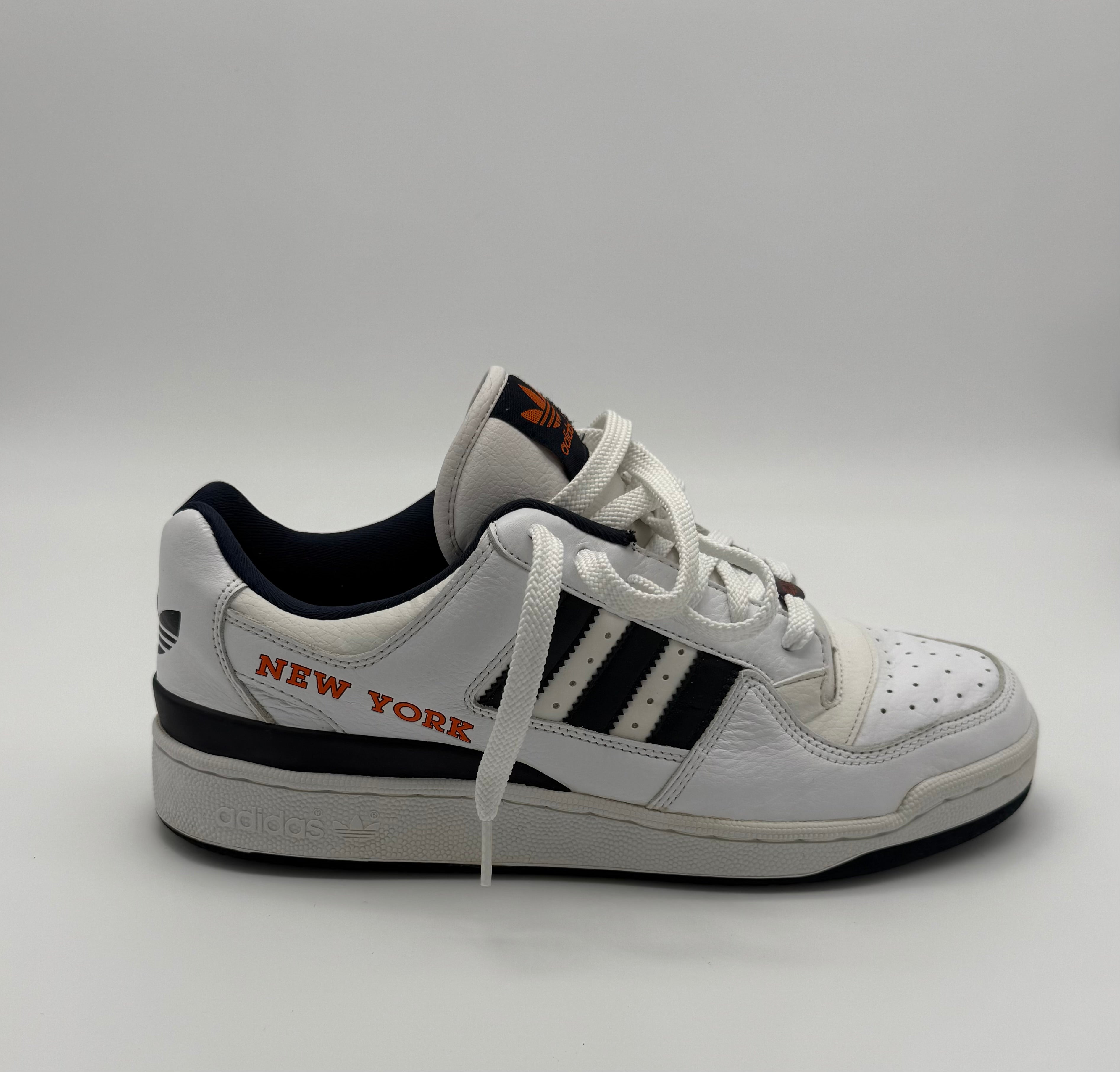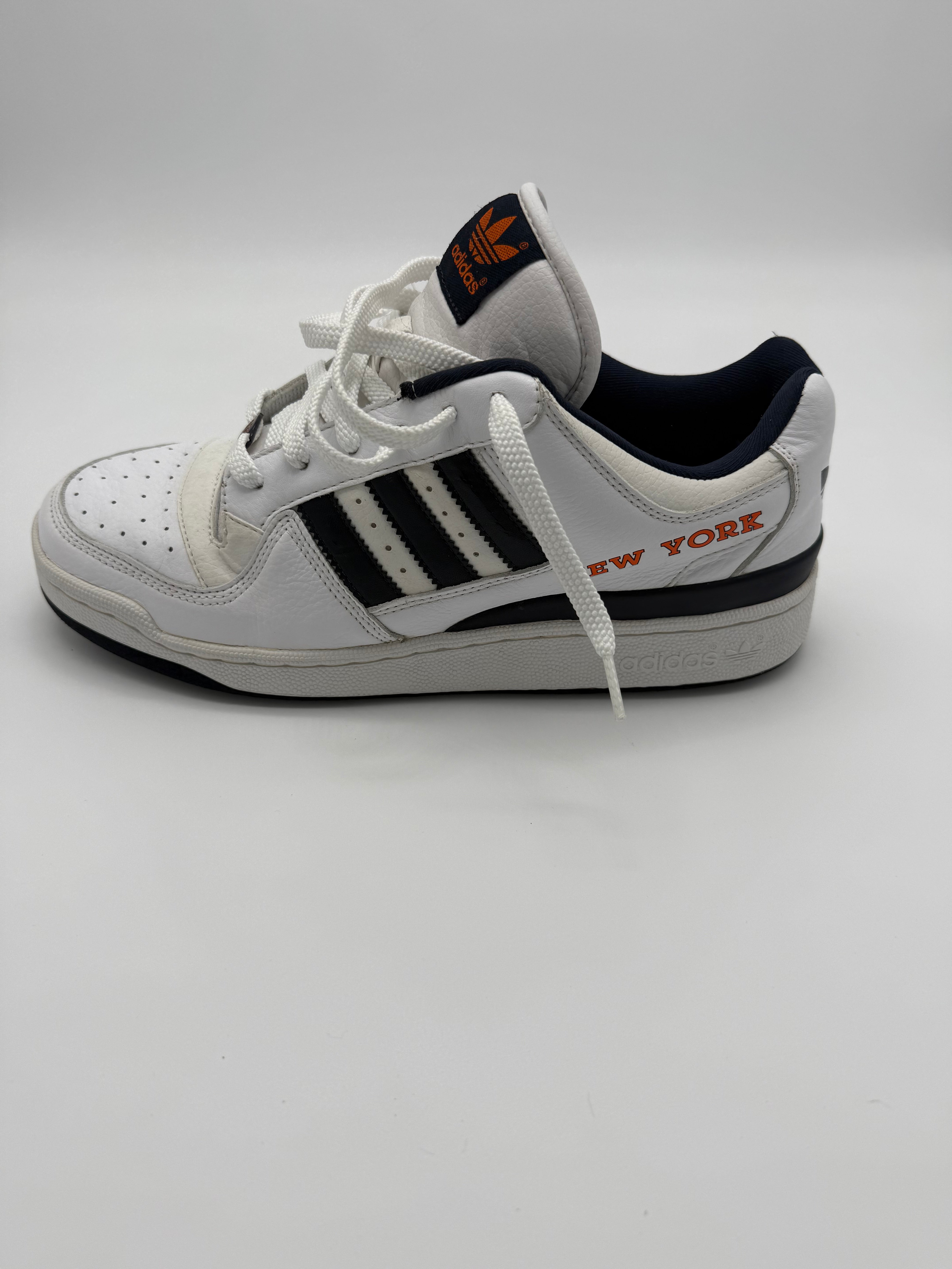 Rep the city that never sleeps with the adidas New York City Edition (art. no. 945538), a vintage 2006 drop featuring clean white leather uppers, navy 3-stripes, and bold orange “New York” text hits on the side.
