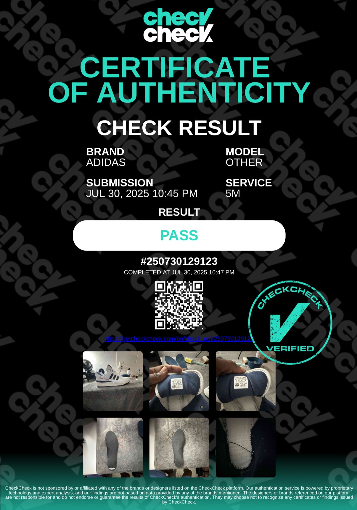- Authenticated – check verified (pass certificate included)